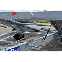 Platforma auto monoax cu sarcina maxima autorizata de 1500 kg (cu amortizare pe ax), cu sistem de franare, avand sarcina utila de 1095 kg, dimensiuni exterioare de 506x201x60 cm si spatiu util de 350x195x4 cm.