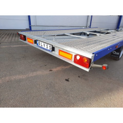 Platforma auto in 2 axe cu sarcina maxima autorizata de 2700 kg, cu sistem de franare, avand sarcina utila de 1980 kg si spatiu util de 500x200 cm.