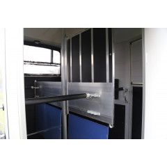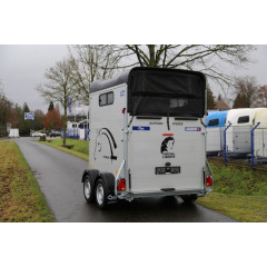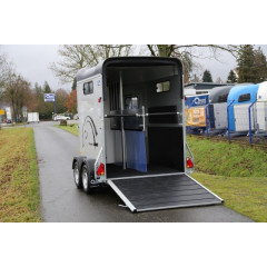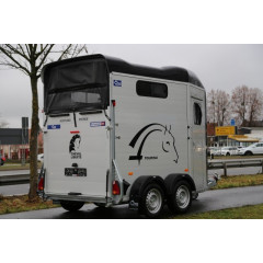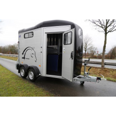 Remorca destinata transportului de cabaline in 2 axe cu sarcina maxima autorizata de 2000 kg (cu amortizare pe ax), cu sistem de franare, avand sarcina utila de 1300 kg, dimensiuni exterioare de 466x239x298 cm si spatiu util de 328x167x230cm.