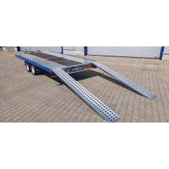 Platforma auto in 2 axe cu sarcina maxima autorizata de 2700 kg, cu sistem de franare, avand sarcina utila de 2010 kg si spatiu util de 450x210 cm.